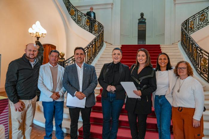 A presidente da Famurs e prefeita de Nonoai, Adriane Perin de Oliveira, participou nesta quinta-feira (07/08) do lançamento do programa “O Sul Tchê Espera”, promovido pelo governo do Estado por meio da Secretaria de Turismo (Setur). Realizado no Palácio Piratini, o evento reuniu autoridades, lideranças e representantes de diversos setores com o objetivo de fortalecer o turismo como motor de desenvolvimento regional.