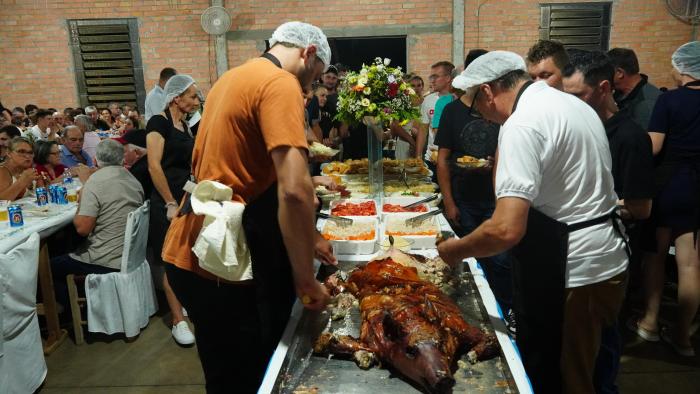 O presidente da Famurs, Marcelo Arruda, participou na noite do último sábado (08/03) do tradicional jantar da Festa do Porco no Rolete. O evento faz parte das celebrações de 33 anos do município de Barra do Rio Azul, destacando o crescimento da produção de suínos e aves na economia local e reforçando a importância da suinocultura para o desenvolvimento do município. O jantar, que há 16 anos é realizado na Comunidade Não Facilite, foi marcado com a preparação de 12 suínos.