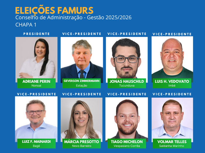 Confira quem são os prefeitos que compõe a Chapa 1 para concorrer ao Conselho de Administração da Famurs – Gestão 2025/2026: