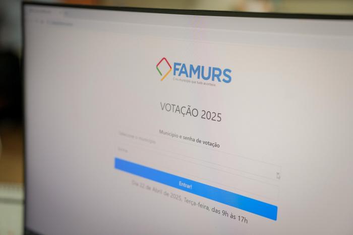 1 - Prefeitos e prefeitas devem acessar o link https://votacao.famurs.com.br, informar o município e senha recebida por e-mail.