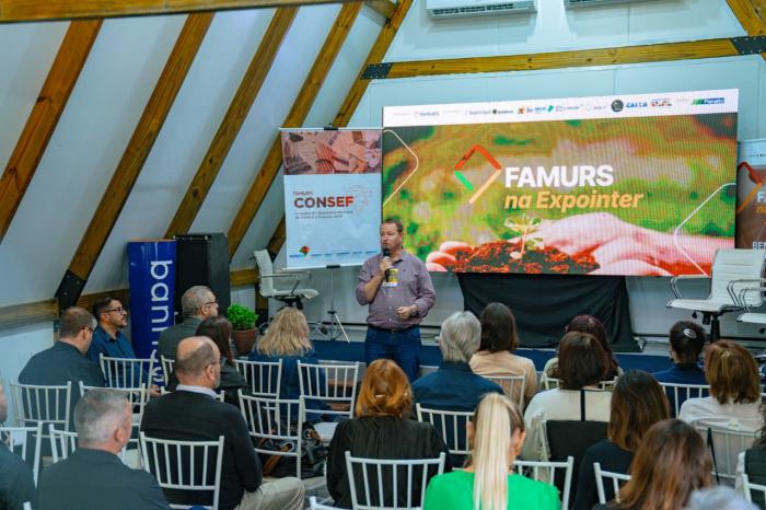 Nesta terça-feira (2/9), a Famurs promoveu a reunião do Conselho dos Secretários Municipais de Fazenda e Finanças do RS (CONSEF), realizada no Auditório Mulher Gaúcha, anexo à Casa Famurs na Expointer. O encontro reuniu cerca de 100 gestores municipais para discutir pautas estratégicas da área fazendária, como o Cadastro Nacional de Imóveis Rurais (CNIR), o Sistema Nacional de Cadastro Rural (SNCR), o Cadastro Imobiliário Brasileiro (CIB) e o Sistema Nacional de Gestão de Informações Territoriais (Sinter).