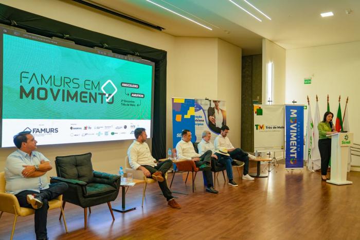 O segundo encontro do Famurs em Movimento, realizado nesta quinta-feira (27) em Três de Maio, reuniu lideranças da Associação dos Municípios da Região Celeiro (Amuceleiro) e da Associação dos Municípios da Fronteira Noroeste (Amufron), que juntas representam 41 cidades. Além da apresentação das demandas regionais, a agenda reforçou pautas que exigem mobilização imediata dos gestores, como os impactos da Reforma Tributária, a necessidade de atualização dos regimes próprios de previdência e o avanço da inteligência artificial no serviço público.